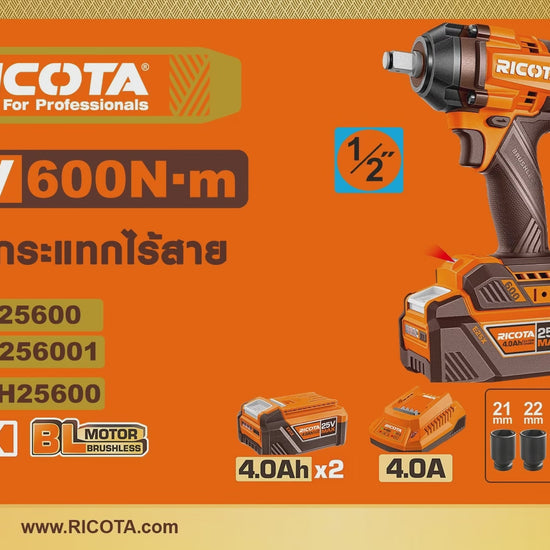RICOTA บล็อกไร้สาย 1/2" 600 นิวตัน 25V RLEWH25600