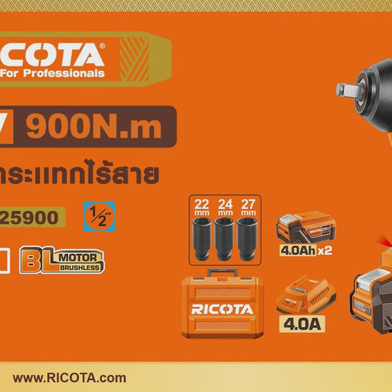 RICOTA บล็อกไร้สาย 1/2" 900 นิวตัน 25V RLEWH25900