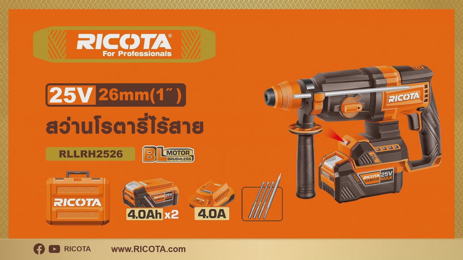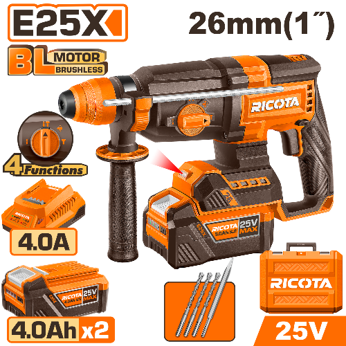 RICOTA สว่านโรตารี่ไร้สาย 3 ระบบ ขนาด 26มิล 25V รุ่น RLLRH2526